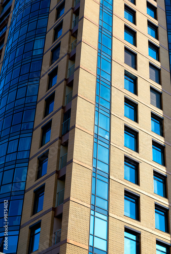 © Aleksey Dmetsov, Fototapeta premium Modern building mirror facade in blue tone