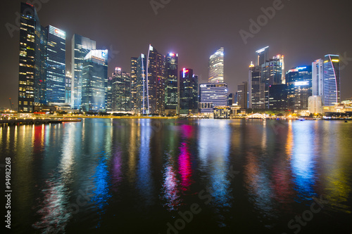 © Sunanta, Naklejka premium modern building of cityscape in singapore at night