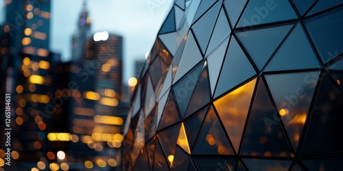© bborriss, Obraz premium Modern building reflecting city lights at dusk in melbourne, australia