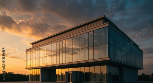 Fototapeta premium Modern building reflecting sunset ambition and architectural design