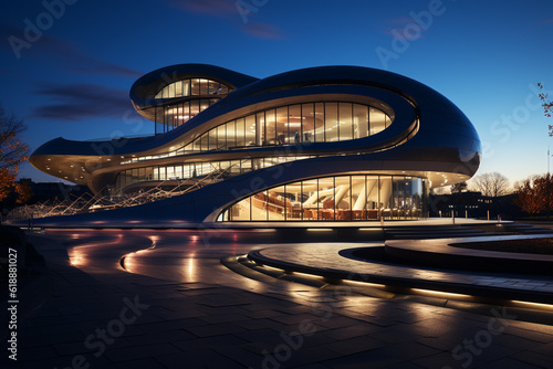 Obraz premium Modern building structure at sunset