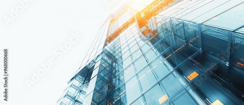 Obraz premium Modern building with glass facade reflecting sunlight, showcasing innovative...