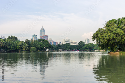 Obraz premium Modern building with lake in the park