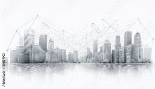 Fototapeta premium Modern buildings, abstract city network connection, city landscape backgrounds