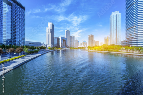 © kalafoto, Naklejka premium Modern buildings and river in urban city,tianjin china