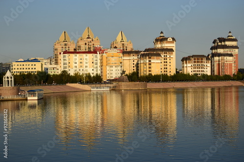© photo20ast, Obraz premium Modern buildings in Astana, Kazakhstan, reflected in the Ishim river