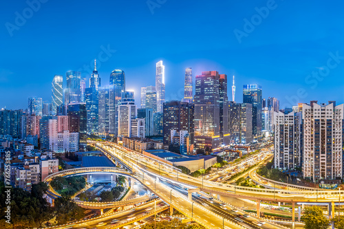 © zhao dongfang, Fototapeta premium Modern buildings skyline and highway in Guangzhou at night