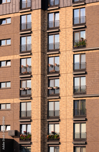 Fototapeta premium Modern buildings, walls and windows. City view on a sunny day.