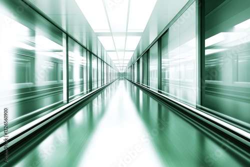 © BOONJUNG, Obraz premium Modern Business Corridor with Glossy Glass and Futuristic Design Elements