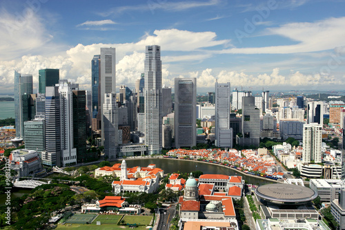 Obraz premium Modern business district and colonial Boat Quay, Singapore
