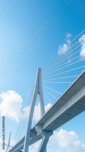 Obraz premium modern cable stayed bridge against clear blue sky with clouds