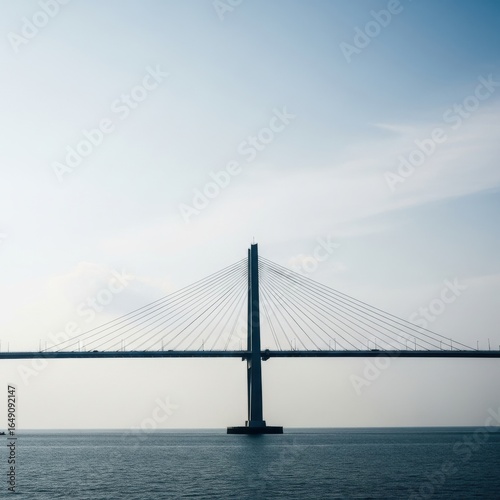 Obraz premium Modern Cable-stayed Bridge Over Calm Water Under Clear Sky