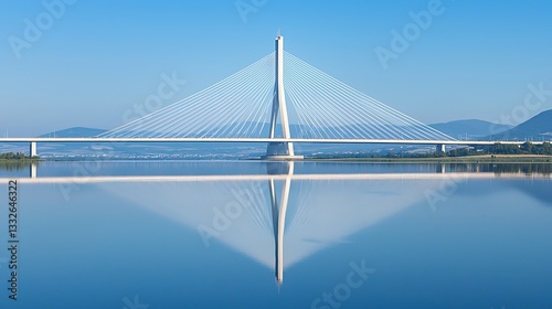 Fototapeta premium Modern cable-stayed bridge reflecting in calm water