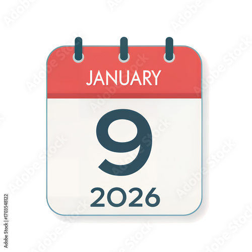 © Mushtaq, Fototapeta premium Modern Calendar icon. January. 2026 9 day. The concept of waiting for an important date. Day calendar with date January 9. Cheklist day calendar. Vector illustration