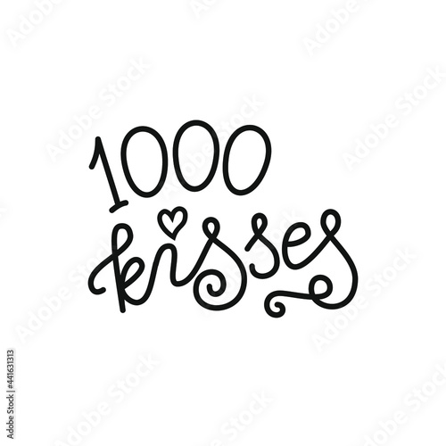Fototapeta premium Modern calligraphy lettering of 1000 kisses in black isolated on white...