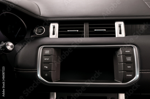 Obraz premium Modern car dashboard. Multimedia screen. Interior detail.