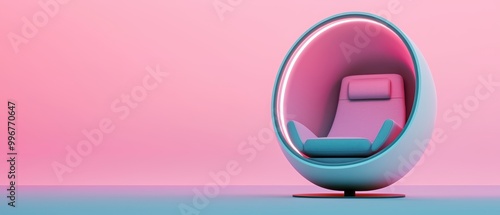 Fototapeta premium Modern chair with a circular design against a pink gradient background.