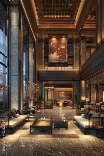 Fototapeta premium Modern Chinese Style Luxury Lobby Interior Design