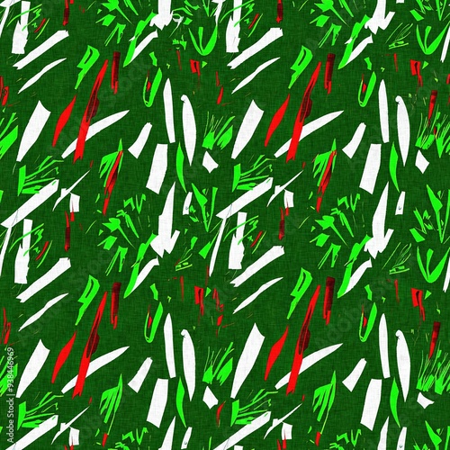 Naklejka premium Modern christmas foliage fir branch in traditional red green colors for festive home decor. Scandi bright yuletide holiday background in repeatable tile swatch.