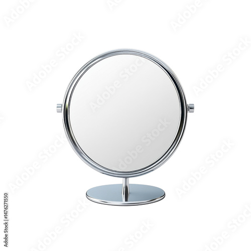 © ThaiAi, Fototapeta premium Modern Chrome Vanity Mirror on Stand, Empty Reflection