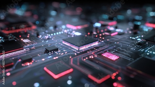 Fototapeta premium Modern Circuit Board with glowing lights, representing advanced technology