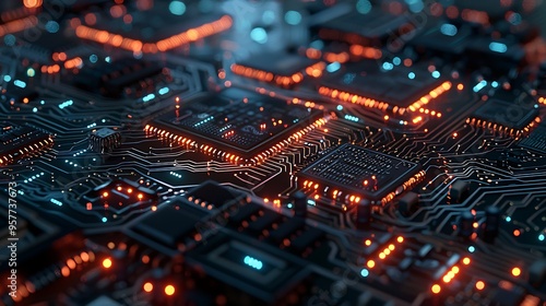 © Engineer Jahid, Obraz premium Modern circuit processor board technology machine.