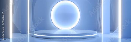 Fototapeta premium Modern Circular Light Stage Installation in a Futuristic Interior with Blue...