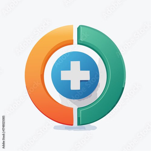 © Wic, Fototapeta premium Modern circular logo with a plus sign, featuring orange and green segments around a blue center.