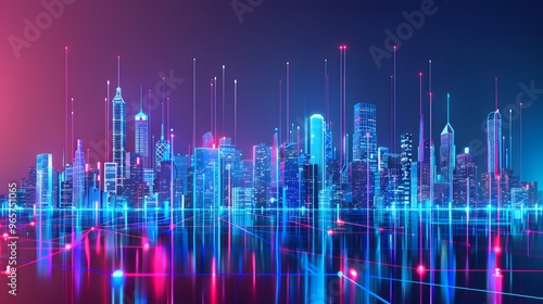 © Kelumlakmal, Fototapeta premium modern city background with technology