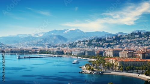 © orendesain99, Fototapeta premium Modern city building view with high mountain