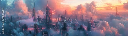 Fototapeta premium Modern City Illustration. Success in business, international companies,...