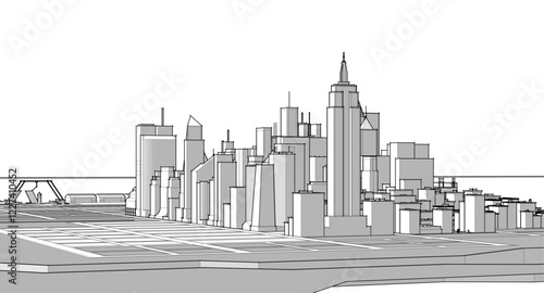 © Svjatoslav, Fototapeta premium modern city industrial landscape 3d