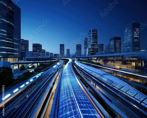 Fototapeta premium Modern city powered by interconnected renewable energy sources and underground energy storage, futuristic technology