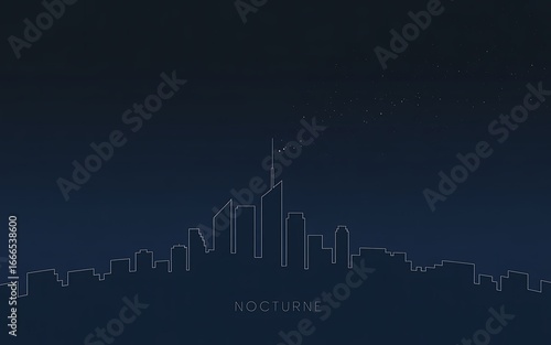 © Al, Fototapeta premium Modern city skyline at dusk with tall skyscrapers and a dark night sky