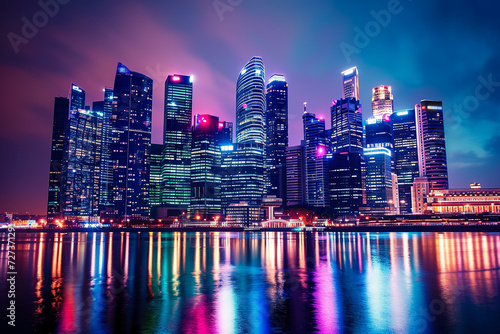 Fototapeta premium modern city skyline at night, illuminated by the colorful lights of skyscraper