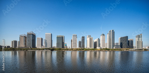 © evening_tao, Naklejka premium Modern City Skyline by the Waterfront