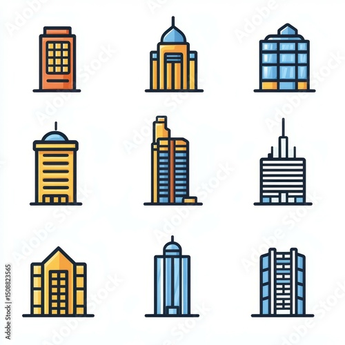 Fototapeta premium Modern city skyline featuring various architectural styles in a vibrant urban...