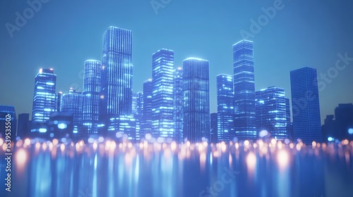 © Abdul, Fototapeta premium Modern city skyline, futuristic architecture, waterfront, sunny day, urban development, architectural rendering