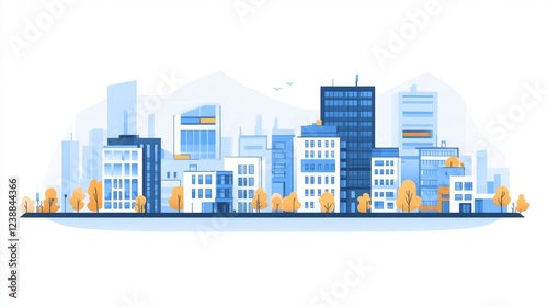 Obraz premium Modern City Skyline Illustration in Blue and White