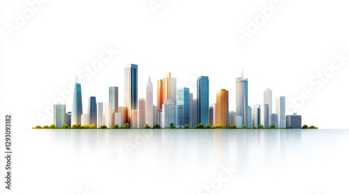 © อาริษา วันดี, Obraz premium Modern City Skyline Illustration with Buildings and Nature Elements