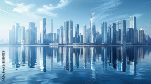 Fototapeta premium Modern City Skyline Reflected in Still Water