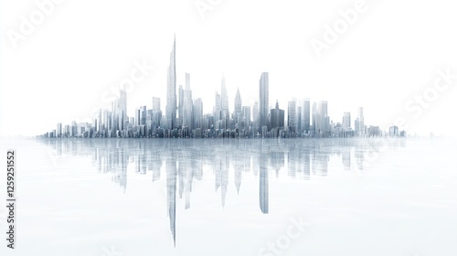 Naklejka premium Modern city skyline reflecting, urban landscape, futuristic design, white...