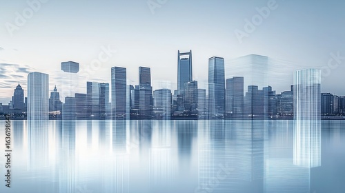 © hongjian, Obraz premium Modern City Skyline Reflection