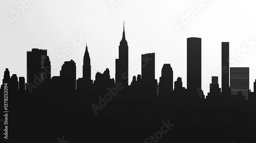 © Olivia, Naklejka premium Modern city skyline silhouette at dusk with skyscrapers and high-rise buildings. Urban landscape with futuristic architecture glowing horizon. Metropolitan scenery with business district silhouettes