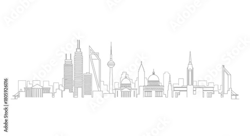 Naklejka premium Modern City Skyline Silhouette with Iconic Buildings.