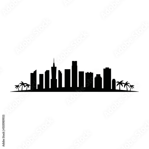 © MdRazaul, Naklejka premium Modern city skyline silhouette with palm trees