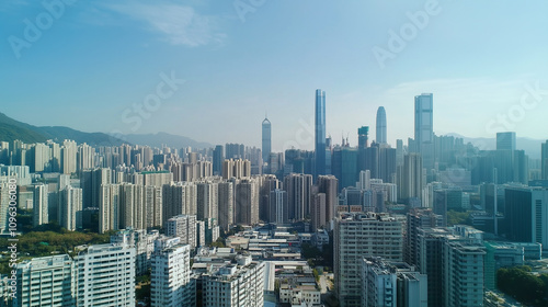 Obraz premium Modern City Skyline with CBD Office Buildings - Drone View and Clear Blue Sky