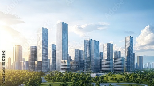 Fototapeta premium Modern city skyline with green park.