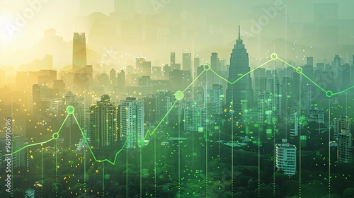 Obraz premium Modern city skyline with growth graph overlay, symbolizing urban development...