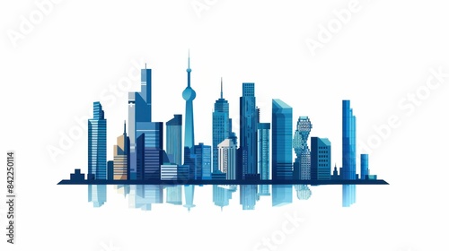 Obraz premium Modern city skyline with impressive skyscrapers and tall buildings in the background, representing urban travel and business opportunities
